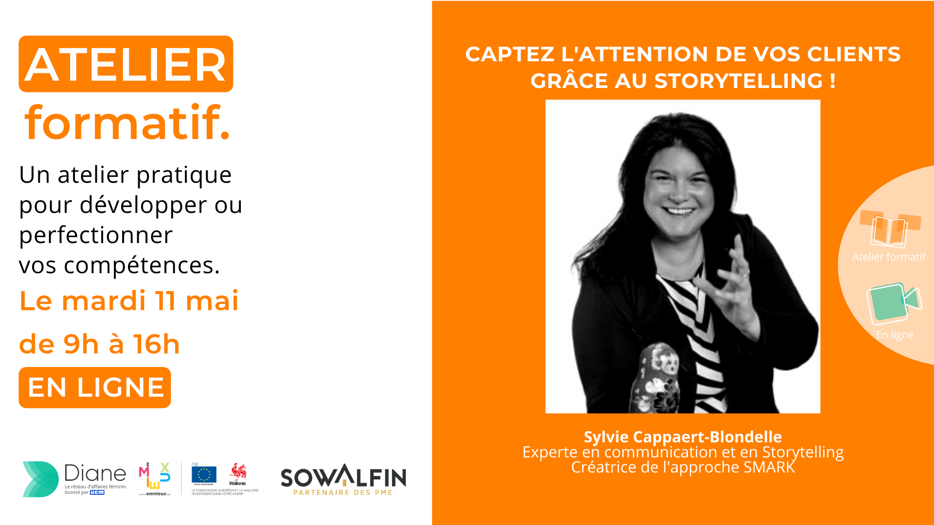 Cet atelier sera animé par Sylvie Cappaert-Blondelle, experte en communication et en Storytelling. Elle a développé sa propre méthode de Storytelling (l’approche SMARK) centrée sur :