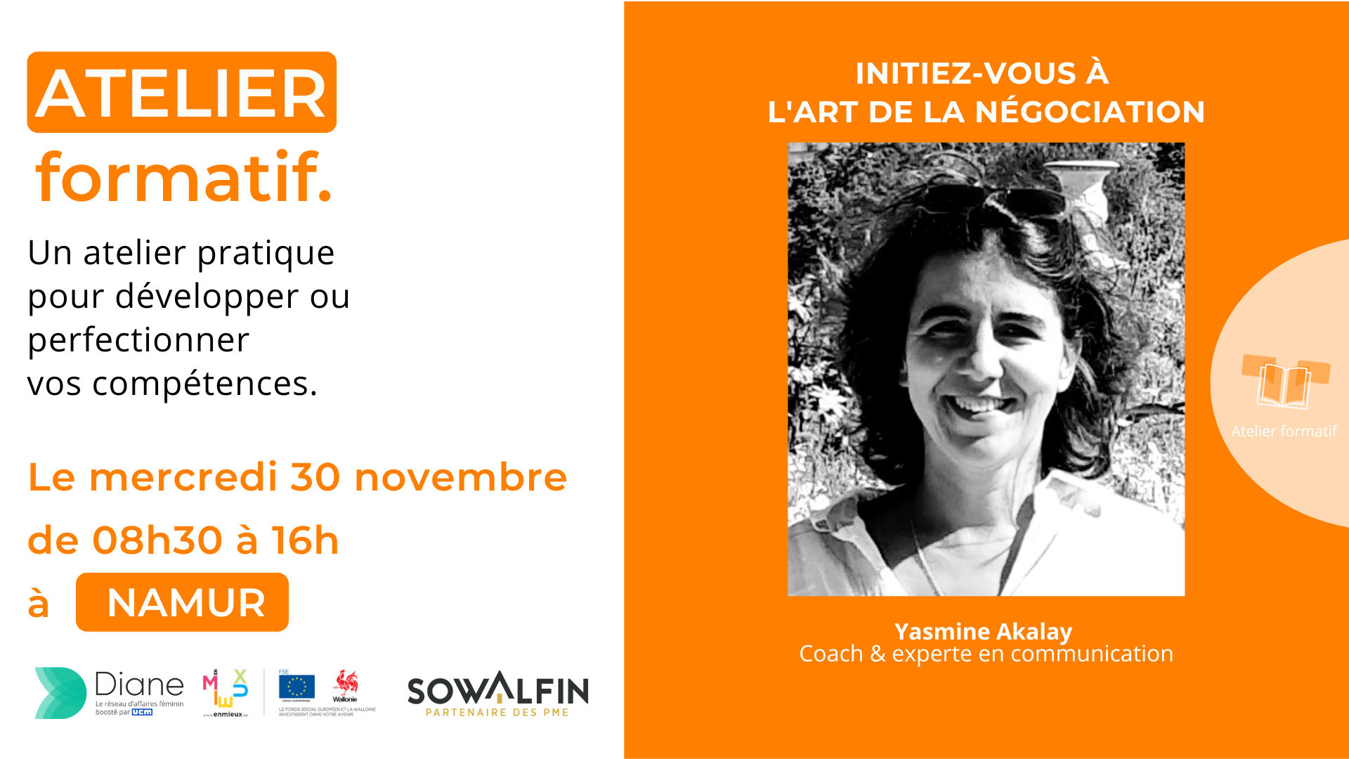 Diane, le réseau d’affaires féminin boosté par UCM, vous propose un atelier pour développer vos compétences dans l’art de la négociation.