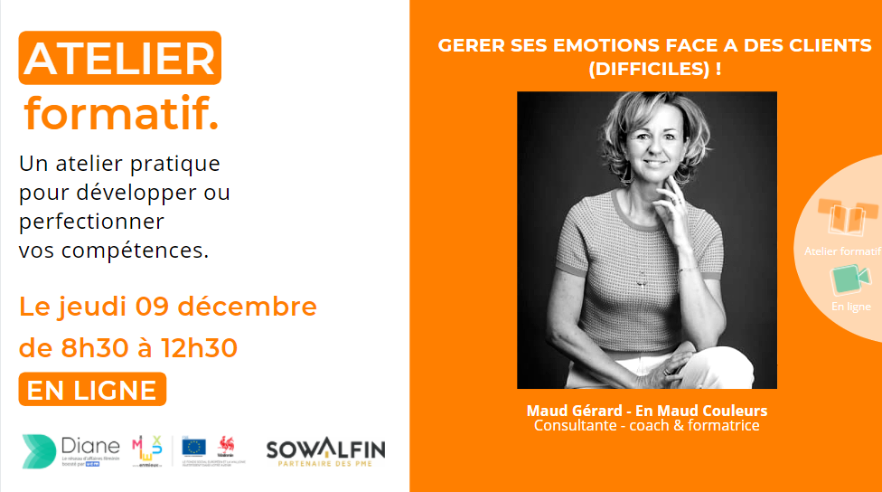 Diane, le réseau d’affaires féminin boosté par UCM vous propose un atelier pratique pour apprendre à gérer vos émotions en situation de vente.
