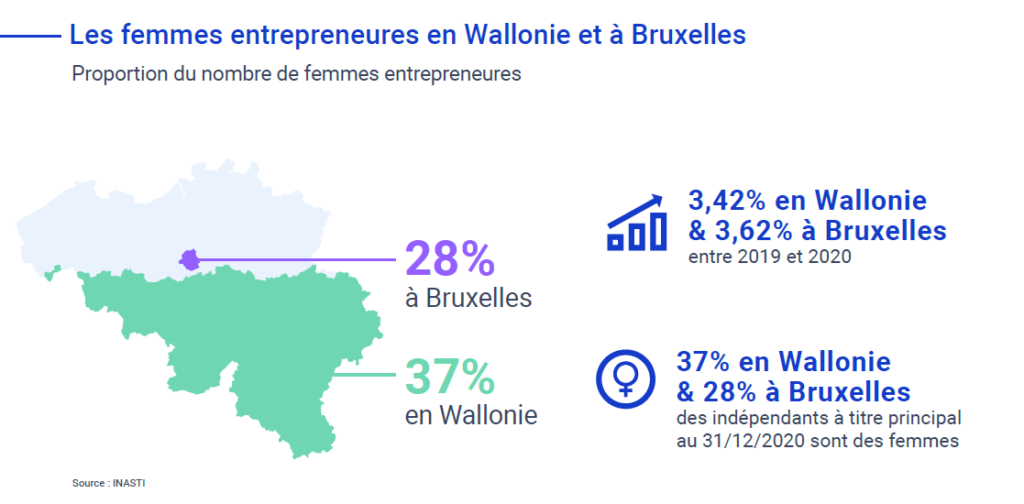Avec une croissance de 3,42% en Wallonie et de 3,62% à Bruxelles entre 2019 et 2020 , l’entrepreneuriat féminin continue de gagner du terrain.