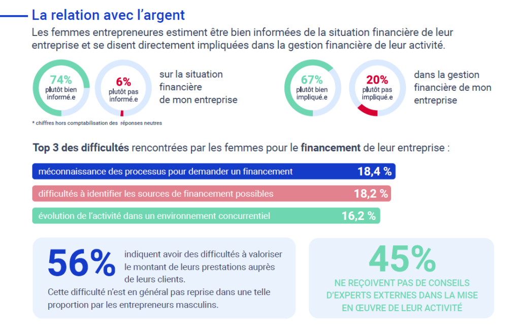 Autre problème de taille : près de la moitié des femmes entrepreneures ne reçoivent pas de conseils d’experts dans la mise en œuvre de leur activité et méconnaissent les aides ou les financements disponibles.